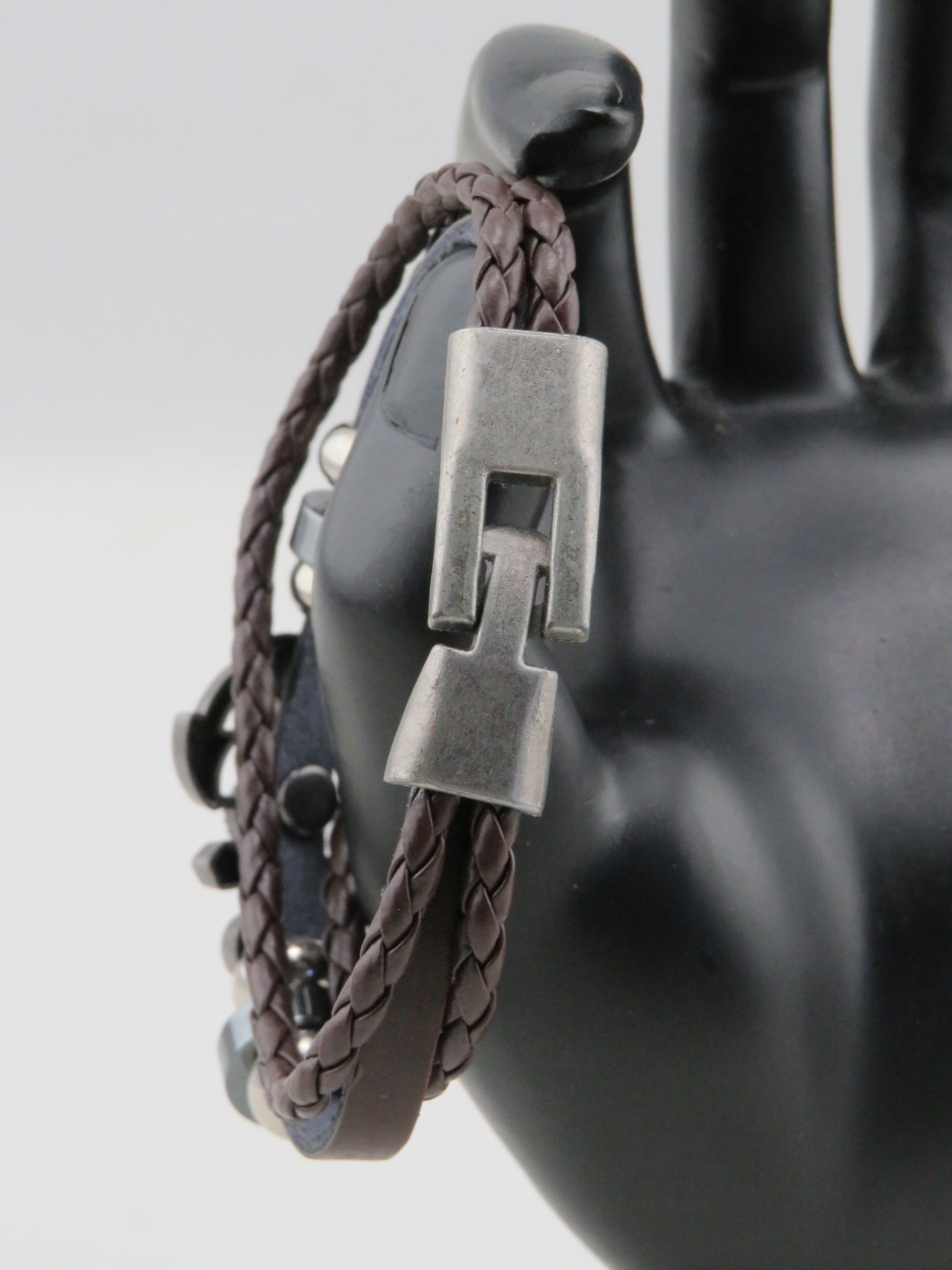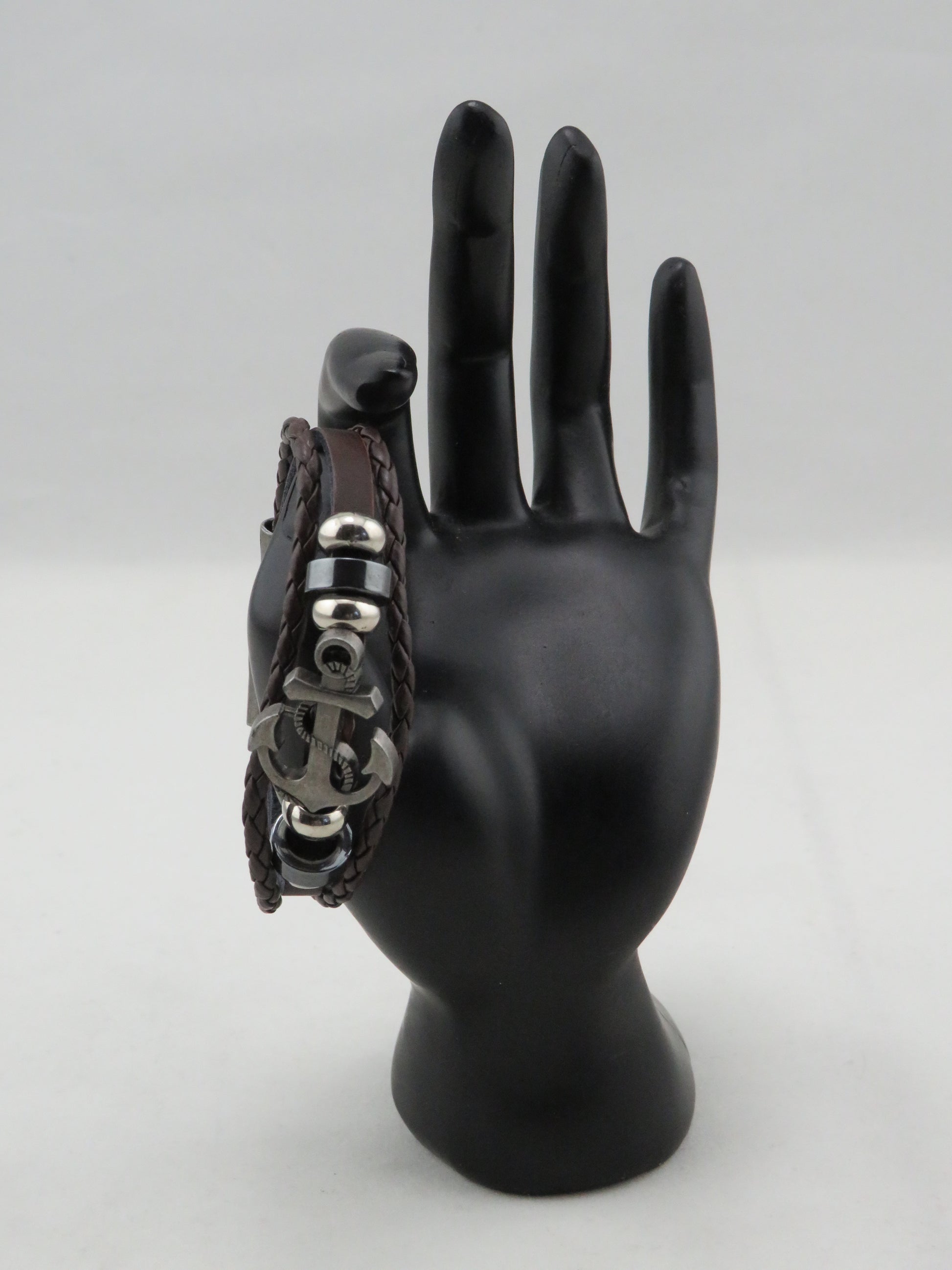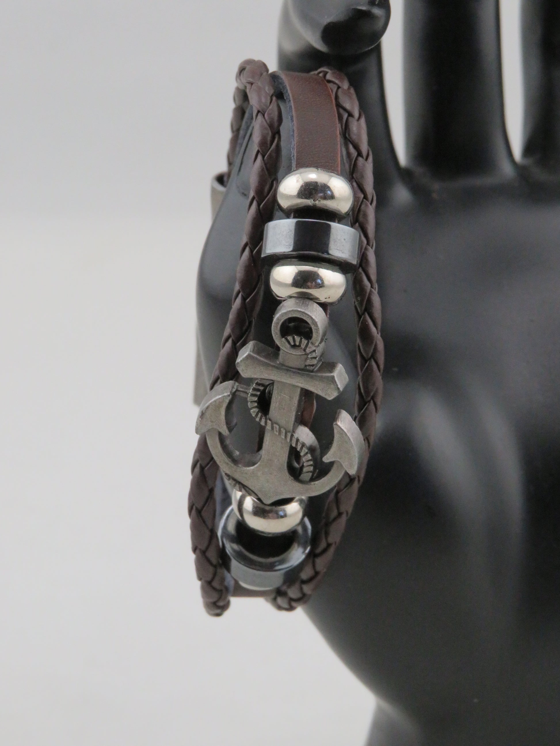 Fouled Anchor Multi Strand Faux Leather Bracelet